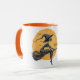 This customizable "Halloween" themed mug design features a spooky witch flying on broomstick with a text that you can personalize.