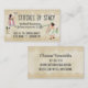 Super cute sewing business card or 'handmade with love' gift tags with vintage remake of thread spool girls with needle and flag and lacy background for seamstress, alterations, plushie or stuffy toys, kids clothing and other sewing businesses.