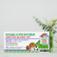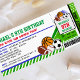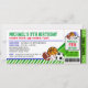 Venez vous amuser ! Fêtez votre anniversaire avec notre invitation Sport Party. Le design comprend du basket, du baseball, du rugby, du football américain et des balles de football sur des bandes bleues foncées, orange et vertes sous la forme de billets d'entrée avec admettre un texte sur le fond. Cette invitation à billets sport allstar est parfaite pour votre fête sportive d'anniversaire, fête sportive de premier anniversaire ou invitation à billets d'événements sportifs.