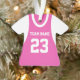 maillot d'équipe de sport rose et blanc avec nom et numéro d'équipe.