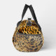Ce petit sac en duffel est montré en empreinte de léopard mignon avec des accents de couleur noire. Impression sous licence