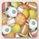 A design showing different kinds of balls, like football, baseball, tennis ball, soccer ball etc. (not only) for your beer while watching sports on TV ;-)