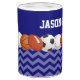 Let your sports fan show off in a fun way with this sports balls with blue chevron personalized toothbrush and soap set.