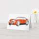 Sports cars come in all sorts of styles and have changed a lot over the years. This design is really cool as it’s of a more vintage sports car. The car is mostly red with a white stripe down the bonnet. This sports car design looks great on these greeting cards