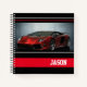 This notebook is shown with a sports car photo print a red Lamborghini.