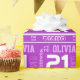 Modern text and sporty stripe design personalized age birthday girls gift wrapping paper, featuring graphic typography and your own six letter name in bright purple, white and pink shades. Personalize with your background colour and own name (please note not all names will fit due to the nature of the font) and age, currently reads Olivia 21, other name lengths are available, if you need assistance please contact me, happy to post one for your name. A great way to give a personalized touch to birthday gifts. Uniquely designed by Sarah Trett.