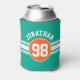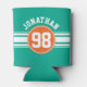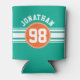 Sports Jersey Stripes Emerald & Orange Name Number Can Cooler