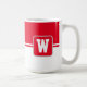 Coffee mug is shown here with a colour block style print with a sample letter, customize and change colours and letter or buy as is.