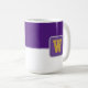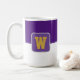 Coffee mug is shown here with a colour block style print with a sample letter, customize and change colours and letter or buy as is.