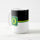 Coffee mug is shown here with a colour block style print with a sample letter, customize and change colours and letter or buy as is.