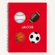 "SPORTS" SPIRAL NOTEBOOK WITH PERSONALIED NAME.