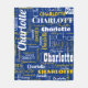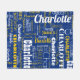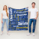 Celebrate your sports team with this sporty blue and retro yellow repeating name graffiti pattern stadium blanket with modern typography in shades of sporty blue, sporty yellow and white, with your name in a variation of different fonts. Great gift for the sports lover from Seattle, or for the baby shower and the new baby of a sports family! This blanket is perfect to take with you on cool nights on the sports field!