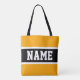 Sporty Bold Bright Yellow Black White Stripes Text Tote Bag