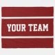 This fun athletic design features white bold text ready to personalize, inside white center stripes against deep red background. The colors and text in this design can be personalized.