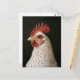 A hyper-realistic portrait of a spotted chicken with red and white feathers, detailed comb and wattles, set against a dark background.