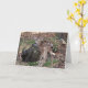This greeting card has been left blank for your own personal messages. It shows a darling photograph of a spotted newborn fawn with floppy ears, long legs, knobby knees, and the cutest expression on its face as it explores the world around it.