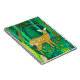 Notebook in a stylized illustration of a cute, spotted fawn in a fairytale forest setting, surrounded by trees and plants, in shades of brown and green