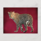 A beautiful spotted leopard with intense yellow eyes. Set on a regal red background.