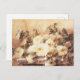 Spray of white chrysanthemums on a stone ledge pos postcard