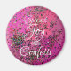 A blast of colourful confetti sprinkled all over shades ona magenta backdrop. Fun festive vibes where you can personalize it in the middle with a phrase, logo or name or just keep it as is with the text, "Spread joy like confetti" creating an uplifting positive theme.