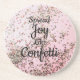 On this stylish coaster is various shades of confetti on a pink champagne pastel backdrop where in the centre is a pink square where you can customize it with a letter and name or keep it as is with the phrase "spread joy like confetti" creating an uplifting postive theme. Elegant chic girly vibes.