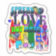 Spread Love Not Hate Poster for Pride Month. Graphics include hearts, rainbows, peace sign.