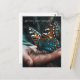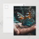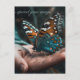 Celebrate a new beginning or honour a beautiful life with this Butterfly in Hand customizable postcard. The design features a stunningly detailed butterfly resting on a hand, captured in vibrant teal and warm copper tones against a soft, ethereal background.