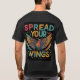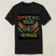 A vibrant and colourful illustration of a bird spreading its wings, with the text "Spread Your Wings" in bold letters. The image conveys a sense of freedom, hope, and inspiration, encouraging viewers to embrace their potential and fly high. It is a powerful and uplifting design that can be used on t-shirts, posters, and other merchandise.