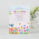 Une invitation juvénile à l'aquarelle, parfaite pour une fête en plein air. La carte comporte une clôture de piquetage avec un bleuet, des fleurs aux couleurs vives, des papillons et un ciel bleu clair.<a href='https://www.freepik.com/free-vector/watercolor-spring-background_1620163.htm'>Conçu par Freepik</a>). <br/>() La carte est facile à customiser avec votre libellé, police, couleur de police et choix de six types de papier.<br/>() Pas exactement ce que vous cherchez? Tous nos produits peuvent être conçus sur mesure pour répondre à vos besoins sans frais supplémentaires.<br/>() Contactez-nous simplement à l'adresse askcottonlamb@gmail.com<br/>() Coordonner les produits disponibles :