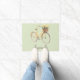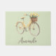 Your name on the doormat, pink background with the watercolor illustration of a spring biclycle green with apples in a basket.