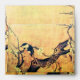Elegant ,whimsical ,colourful floral design with a cute spring bird on the branches of a flowering tree,blooms,blossoms in yellow ,brown,white colours created with digital re-elaboration of an antique oriental miniature.