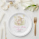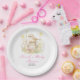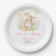 Pretty baby shower plates with an adorable bird on a watering can with pink and yellow tulips. Perfect for a spring or summer baby shower. The words can be changed to suit your own details or requirements