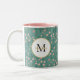 'Spring Bloom', teal & pink floral customized Two-Tone Coffee Mug