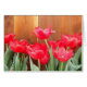 Bright tulips along fence.