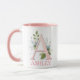 The 'Blossom Initial - Ashley Personalized Mug' combines elegance and personal charm. A beautiful floral garland graces the letter 'A', offering a soft and inviting design, while the name 'Ashley' is elegantly inscribed below. The blush pink handle and interior add a subtle touch of colour, perfect for those who appreciate delicate design in their homeware. This mug is ideal for a thoughtful gift or a special addition to your collection, allowing you to enjoy a serene sip of your favourite drink any time of the day.