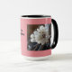 15 OZ. mug with beautiful spring blossom that was in a vase and forced in February, which is very early in the high dessert of Eastern Oregon. Pink background and Sumpter Valley Engineer's Gallery on the other side. This mug is used in the J Bar B Studio of Sumpter Valley Engineer's Gallery, and the trees that the blossom is from grow in the yard of the studio. Photograph by Cynthia Mayhall Christy. Please customize colour and text to fit your preferences.