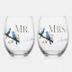 Spring Bluebirds Mr. and Mrs. Stemless Wine Glass