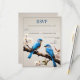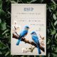Send guests a simple and elegant Spring Bluebirds RSVP Card with your invitation. Response card design features a pair of bluebirds resting on a wooden branch with spring blooms against a paper textured background. Personalize with the response date and menu choices. Additional wedding stationery available with this design as well.