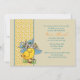 A cute vintage image of a baby chick with an Easter bonnet inspired this delightful invitation. The card has a sand-coloured background intersected with a sunny dotted ribbon that is trimmed with blue scallops. It's a terrific invitation for any springtime celebration.