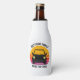 Cool custom road trip bottle cooler for spring break or summer vacation with your family or friends. Personalize with your last name or group above the retro sunset and car silhouette. Perfect keepsake souvenir for a trip to a cottage or across the country. Drive off into the sunset with this shirt.
