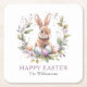 Spring Bunny Easter Egg Wreath Personalized Square Paper Coaster
