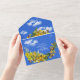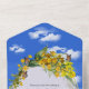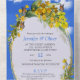Cheerful yellow buttercup flowers are a floral masterpiece against the blue spring sky with butterflies all in one card for the wedding couple.