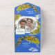 Cheerful yellow buttercup flowers are a floral masterpiece against the blue spring sky with butterflies all in one card for the wedding couple.