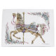 Pen and ink drawing with watercolor tinting. A fanciful seasonal carousel horse decorated for Spring, inspired by the "Philadelphia" school of carousel horse makers who strove for realism in their carvings. This exuberant palomino "jumper" is adorned with a basket-weave saddle, ruffles, ribbons and blue morning glories. Exemplifying its namesake season, this steed is full of spirited vitality: come along for a ride!