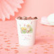 Pretty baby shower paper cup with an adorable chick and pink and yellow tulips. Perfect for a spring or summer baby shower. The words can be changed to suit your own details or requirements