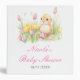 Pretty baby shower photo album with an adorable chick and pink and yellow tulips. Perfect for a spring or summer baby shower. The words can be changed to suit your own details or requirements