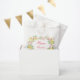 Pretty easter egg hunt favor bag with an adorable chick and pink and yellow flowers. Perfect for a spring or summer baby shower. The words can be changed to suit your own details or requirements
