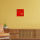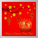 Stylized illustration with yellow "Cherry" blossoms, Chinese lanterns, golden Chinese paper-cut of a Tiger + Happy Chinese New Year in English. Design on square small poster with custom year 2022 in yellow + red background in back (to customize if you want).
