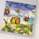 This sticker comes from a painting School Children and myself designed together. We first poured watery paint on the canvas for the background colors and effect. We then decided on the type of flowers and insects such as ladybugs , bees and butterflies we would want in the painting.