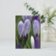 A Spring postcard with orange-yellow crocuses about to open. In the language of flowers, the crocus means cheerfulness, gladness and joy.